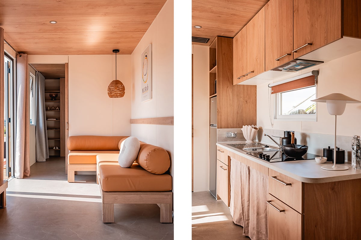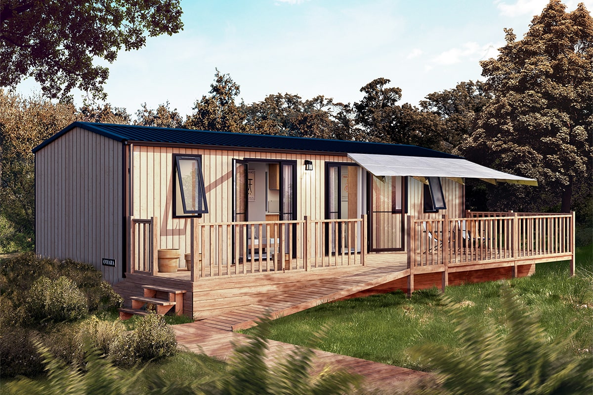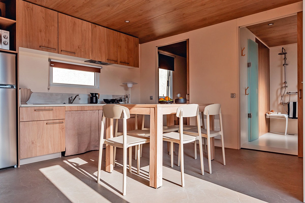 The Zen 4 Fleurs Cottage, offering great comfort and a soothing atmosphere, is designed to accommodate up to 5 people. It also features a superb wooden terrace, perfect for relaxing moments. Depending on the model, some cottages are in the pedestrian zone.