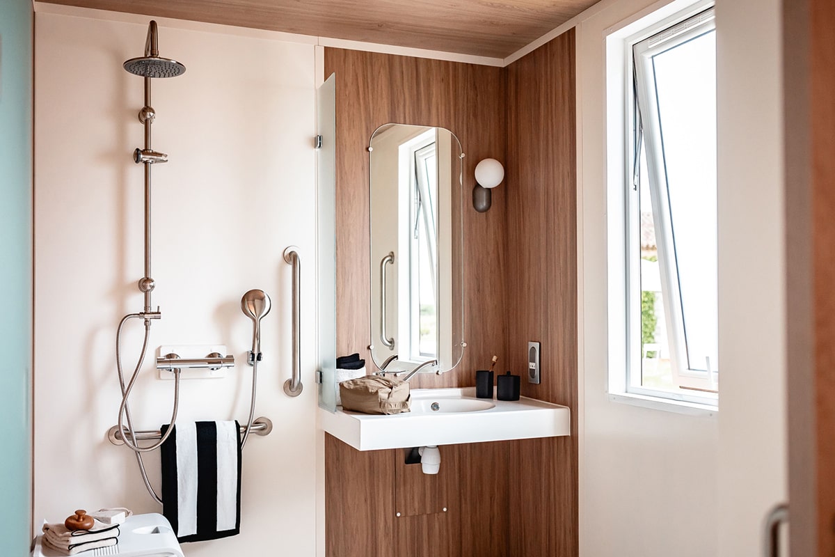 It offers a large 50m² surface area designed to accommodate people with reduced mobility, with XXL shower room, 150cm diameter turning areas, 83cm openings, XXL master bedroom and XXL made-to-measure comfort!
